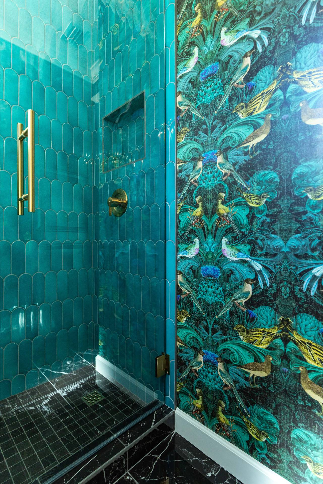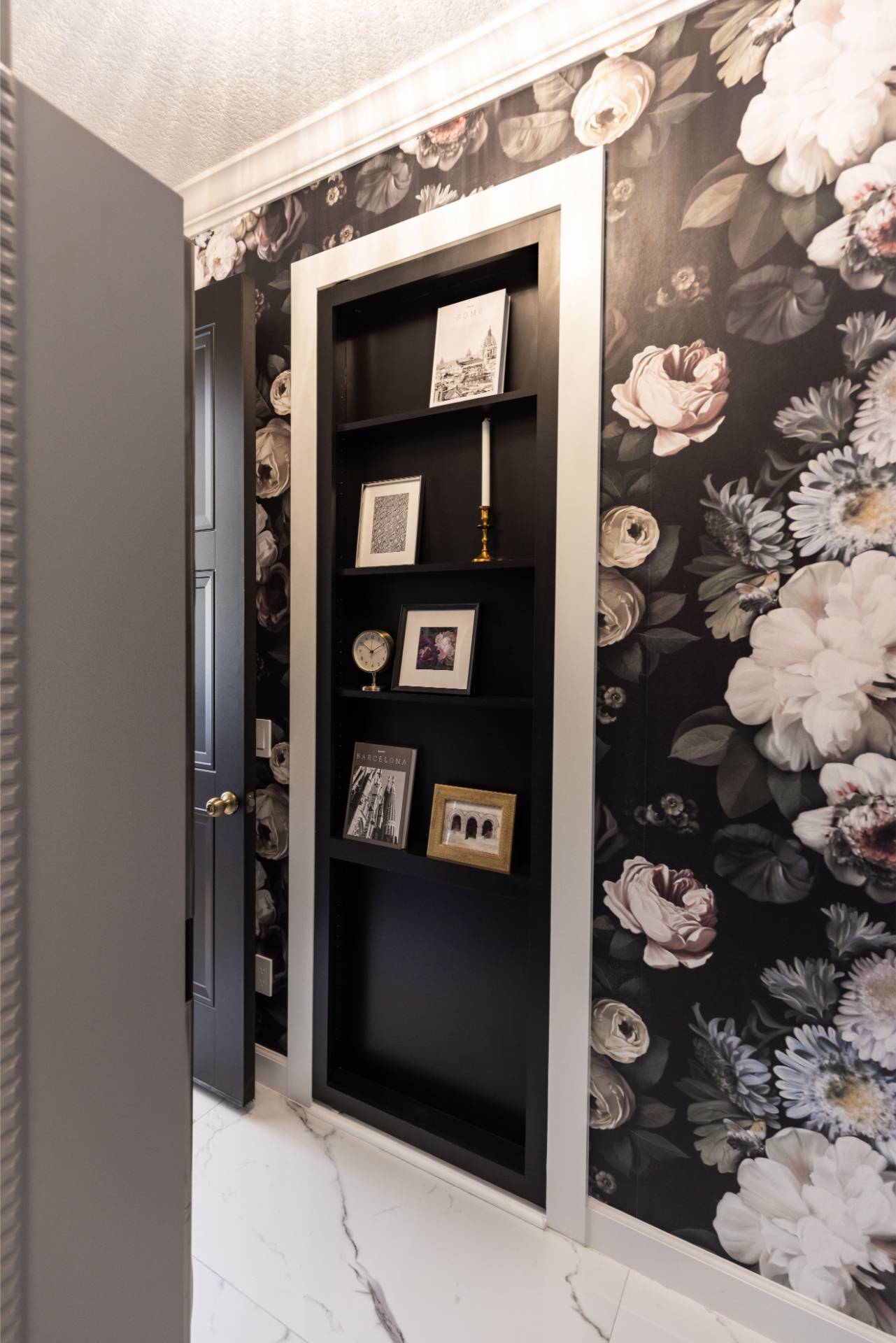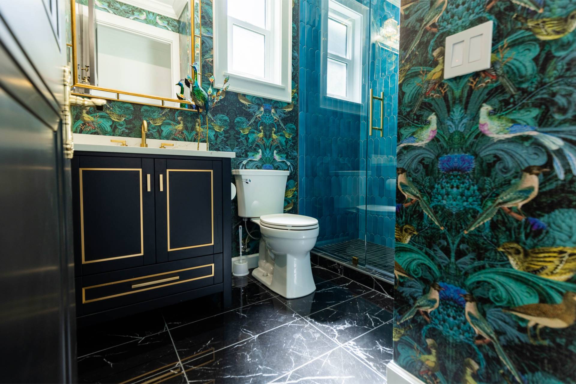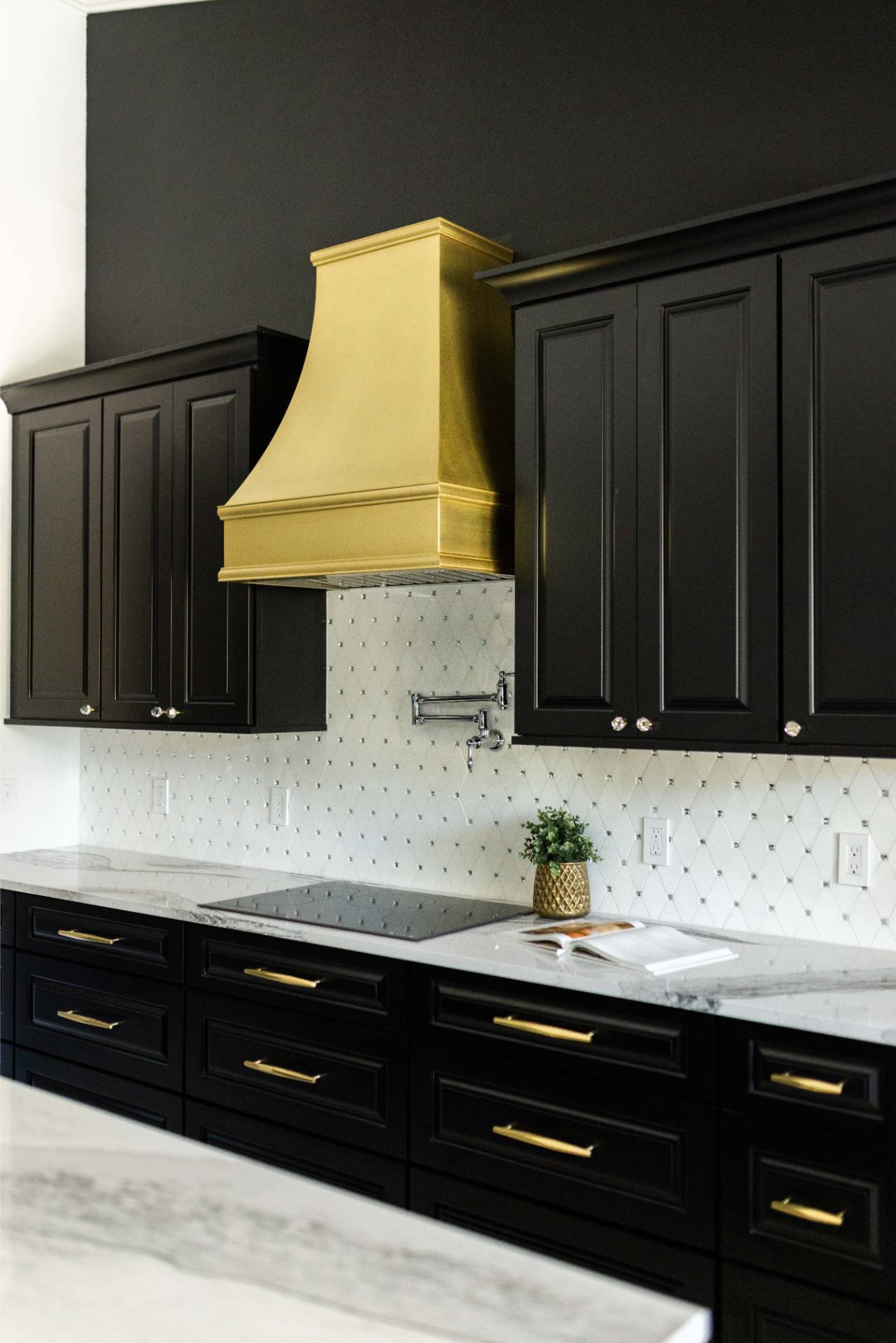 The client’s design vision leaned boldly toward Glam, and the aesthetic shines throughout the home. Think high-gloss finishes, luxe textures, statement lighting, and rich metallic accents—all coming together to create an elevated, sophisticated atmosphere.