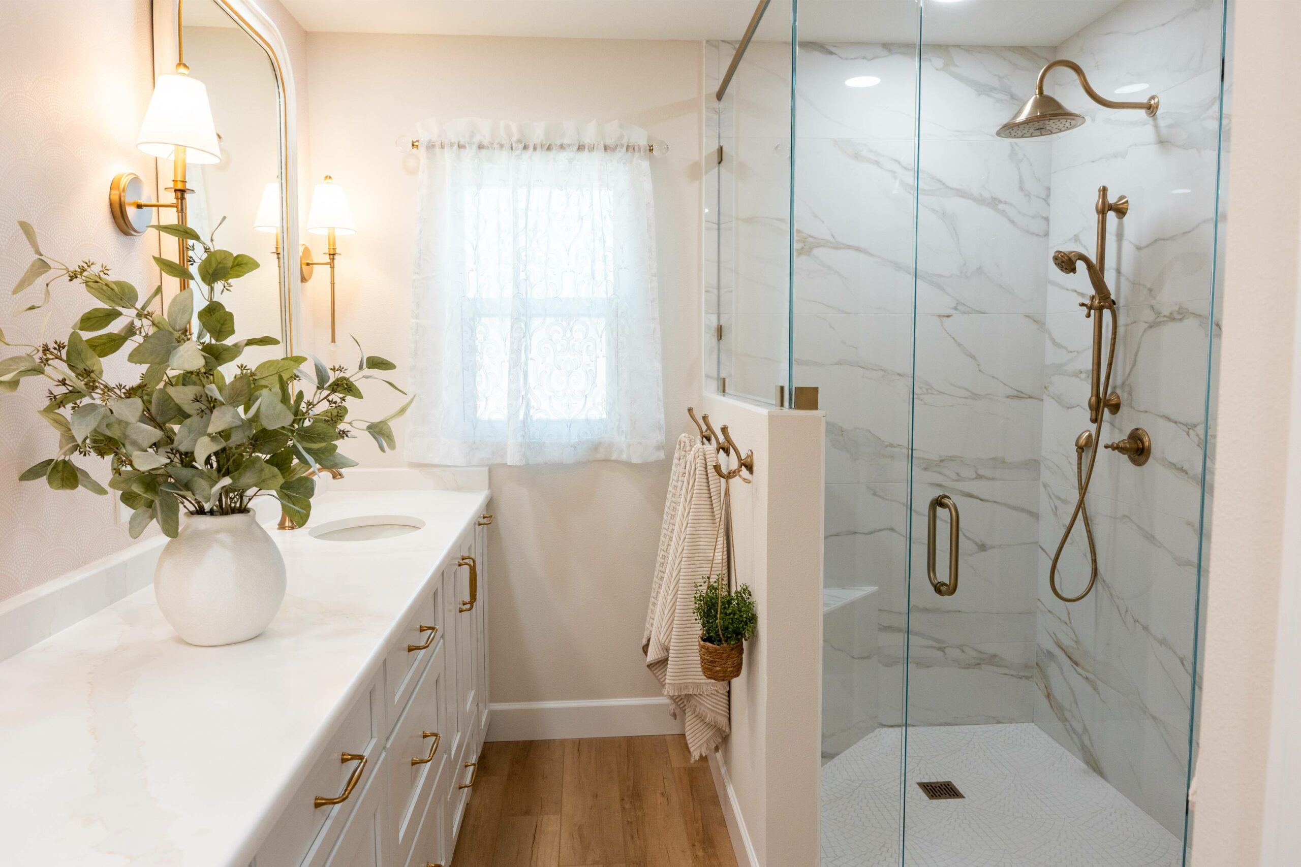 This 1988 Mill Creek bathroom was firmly rooted in the ’80s, with outdated fixtures and a layout that no longer suited modern needs. Our remodel completely transformed the space, reimagining the layout to enhance functionality and flow. The result is a classic, beautiful bathroom with a calming design that feels both timeless and inviting. Thoughtfully chosen materials and finishes bring a fresh yet enduring elegance, creating a serene retreat that honors the home’s character while embracing today’s lifestyle.