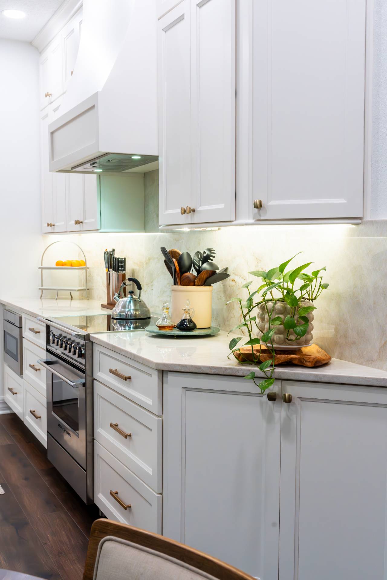 This kitchen remodel in Mill Creek transformed a dated space into a warm, inviting hub for family life and baking. The reimagined layout centers around a spacious island designed for shared cooking and ample baking projects, creating a functional yet welcoming environment. Embracing a cozy traditional style, the kitchen features elegant ivory cabinetry paired with stunning quartzite countertops, adding timeless beauty and durability. The thoughtful design enhances both daily living and special family moments, making this kitchen a true heart of the home.