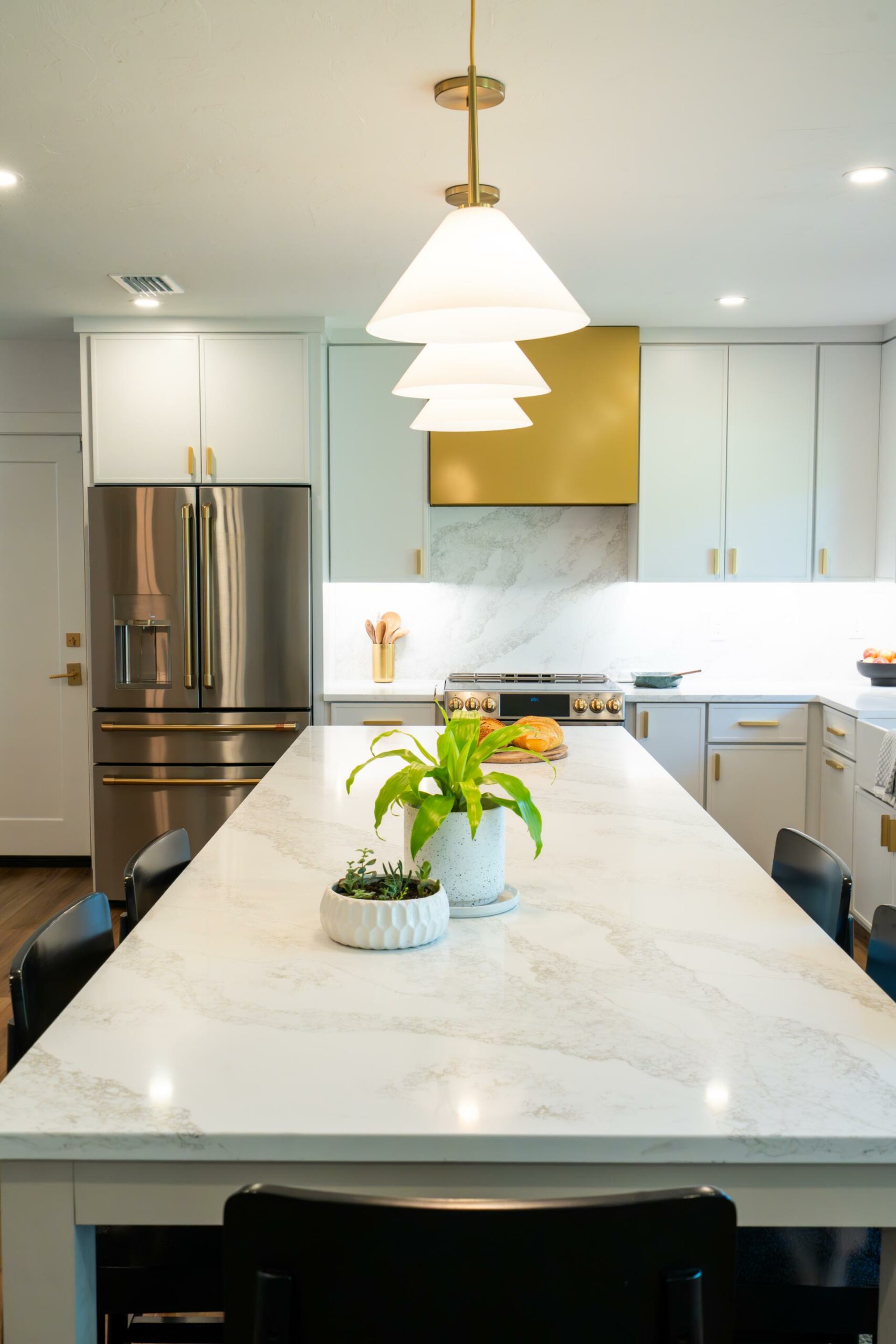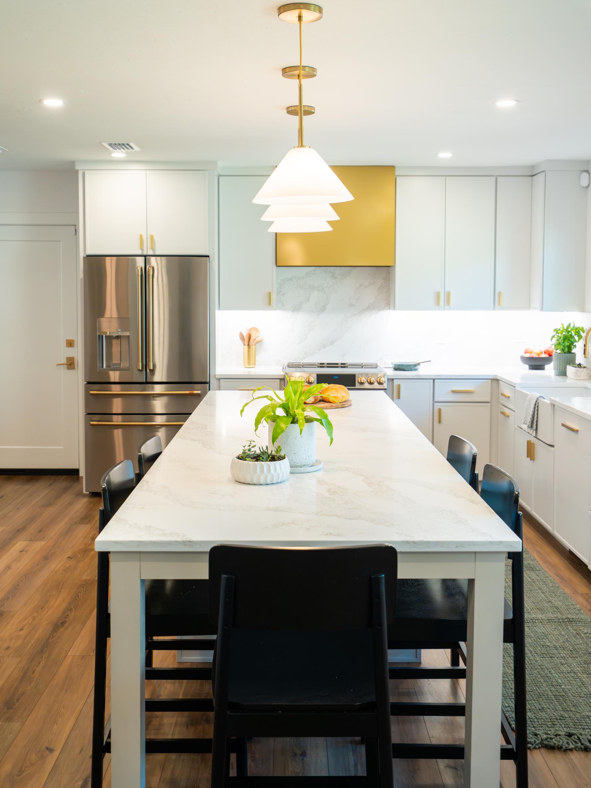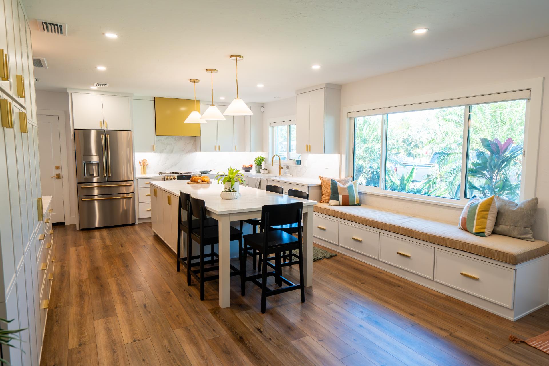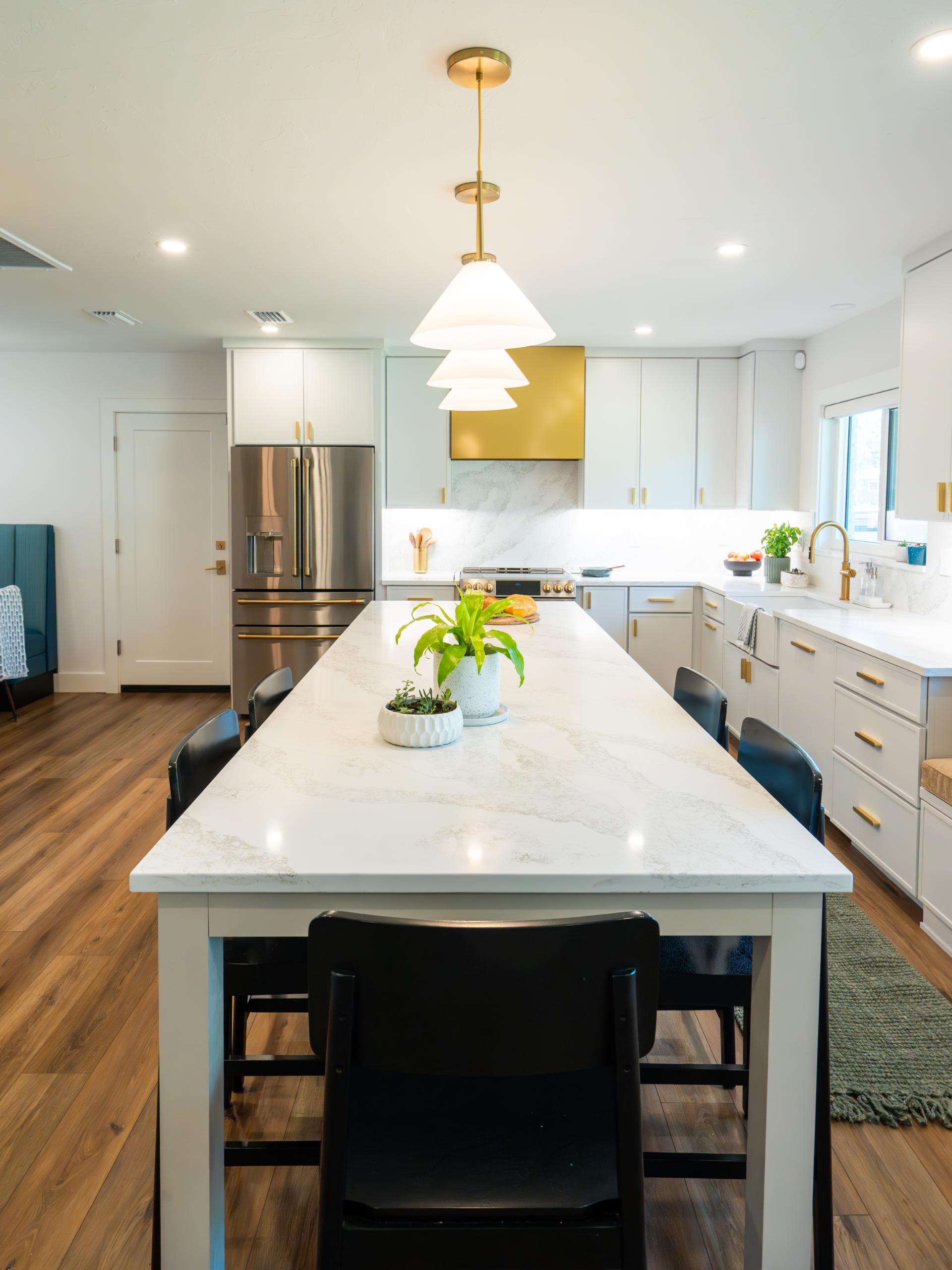 This 1957 home underwent a thoughtful and modern remodel focused on adapting its classic structure for the needs of a growing family. The renovation centered on the kitchen, dining room, and living room—transforming the heart of the home into a bright, functional, and cohesive space.