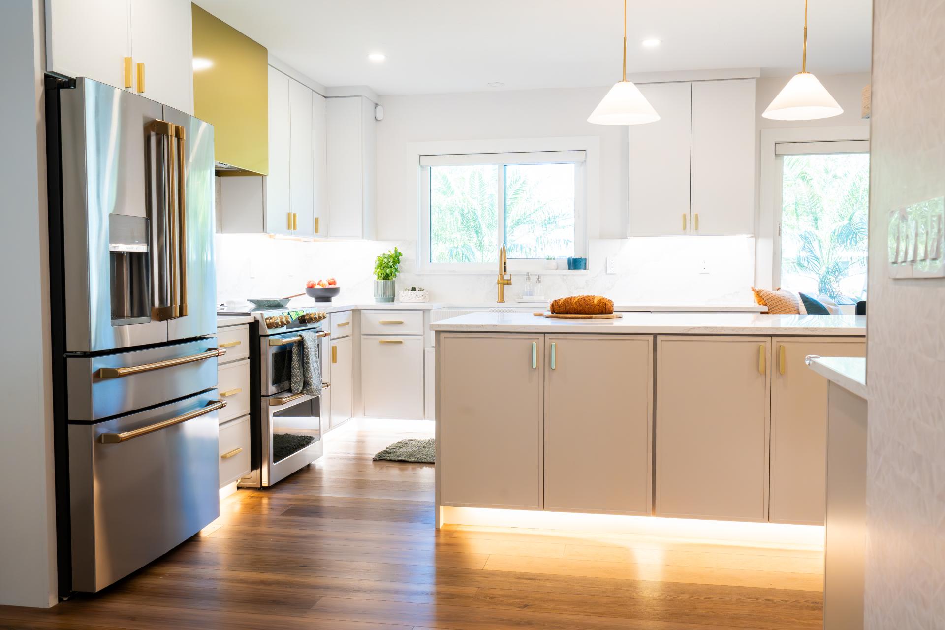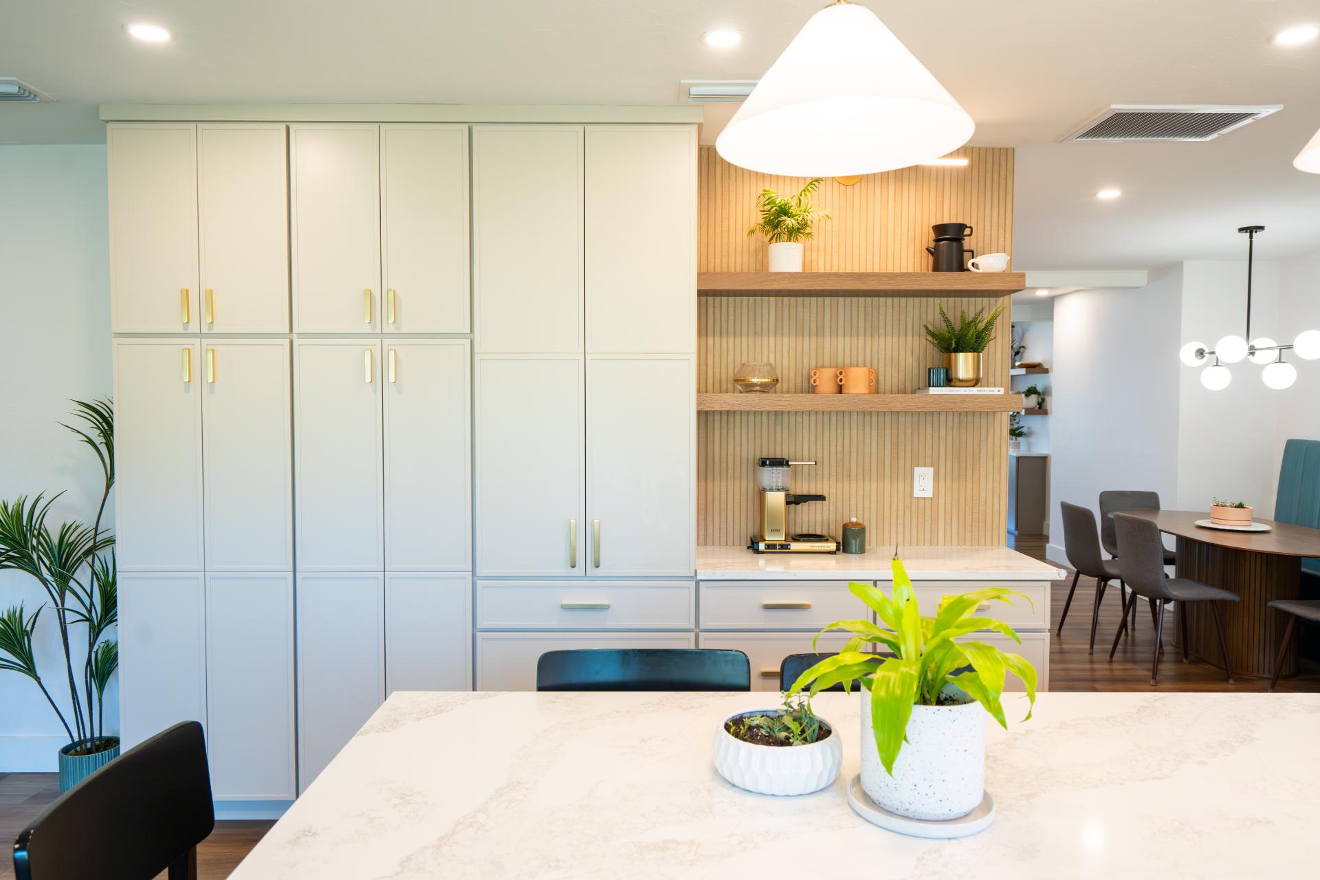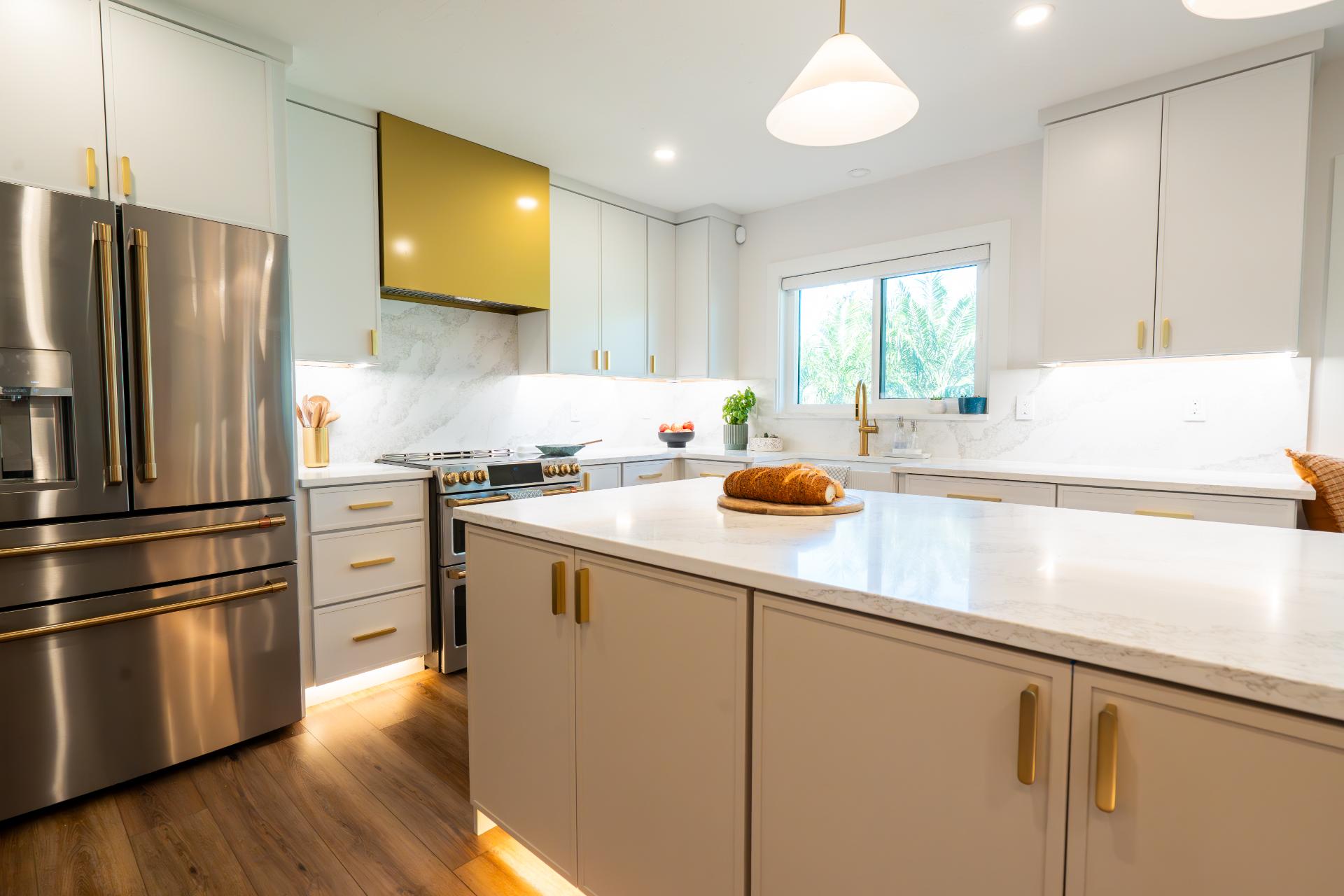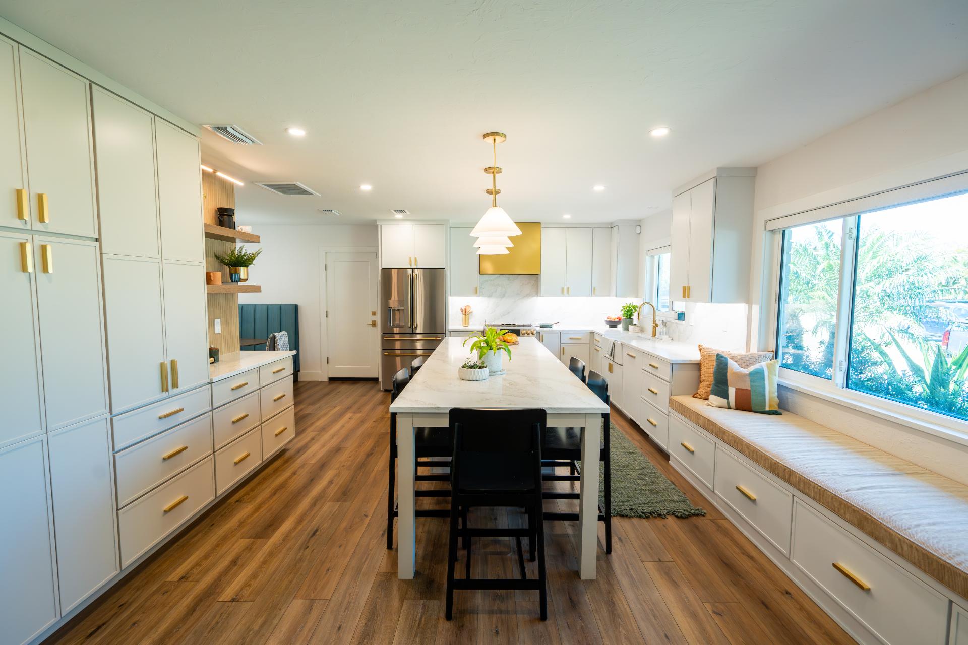 This 1957 home underwent a thoughtful and modern remodel focused on adapting its classic structure for the needs of a growing family. The renovation centered on the kitchen, dining room, and living room—transforming the heart of the home into a bright, functional, and cohesive space.