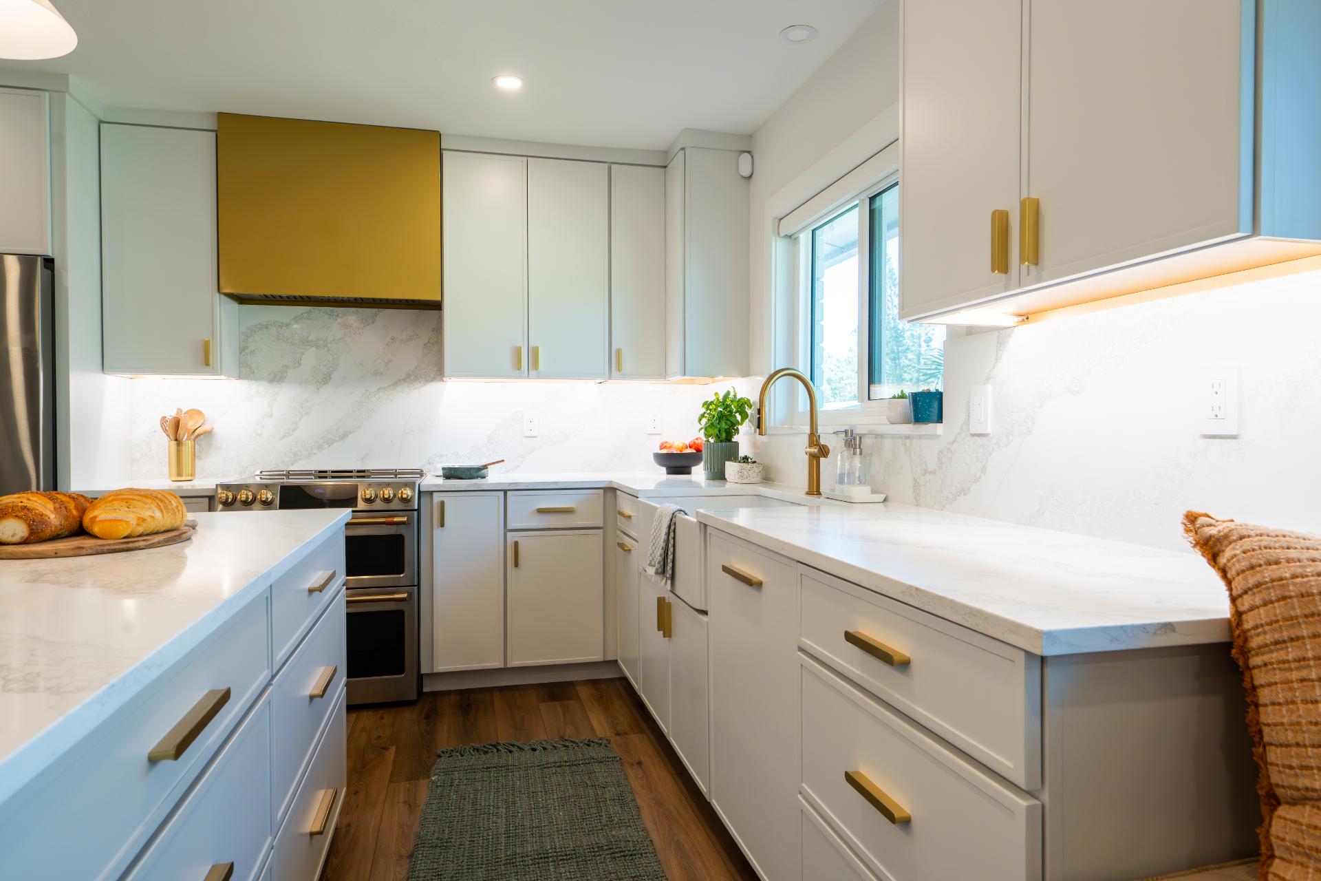 Rooted in Scandinavian design principles, the remodel emphasizes clean lines, minimalism, and warmth. A neutral palette of whites, soft woods, and muted tones complements the home’s original character while introducing a timeless, airy aesthetic. Thoughtful storage solutions and practical design choices ensure the home grows gracefully with the family for years to come.