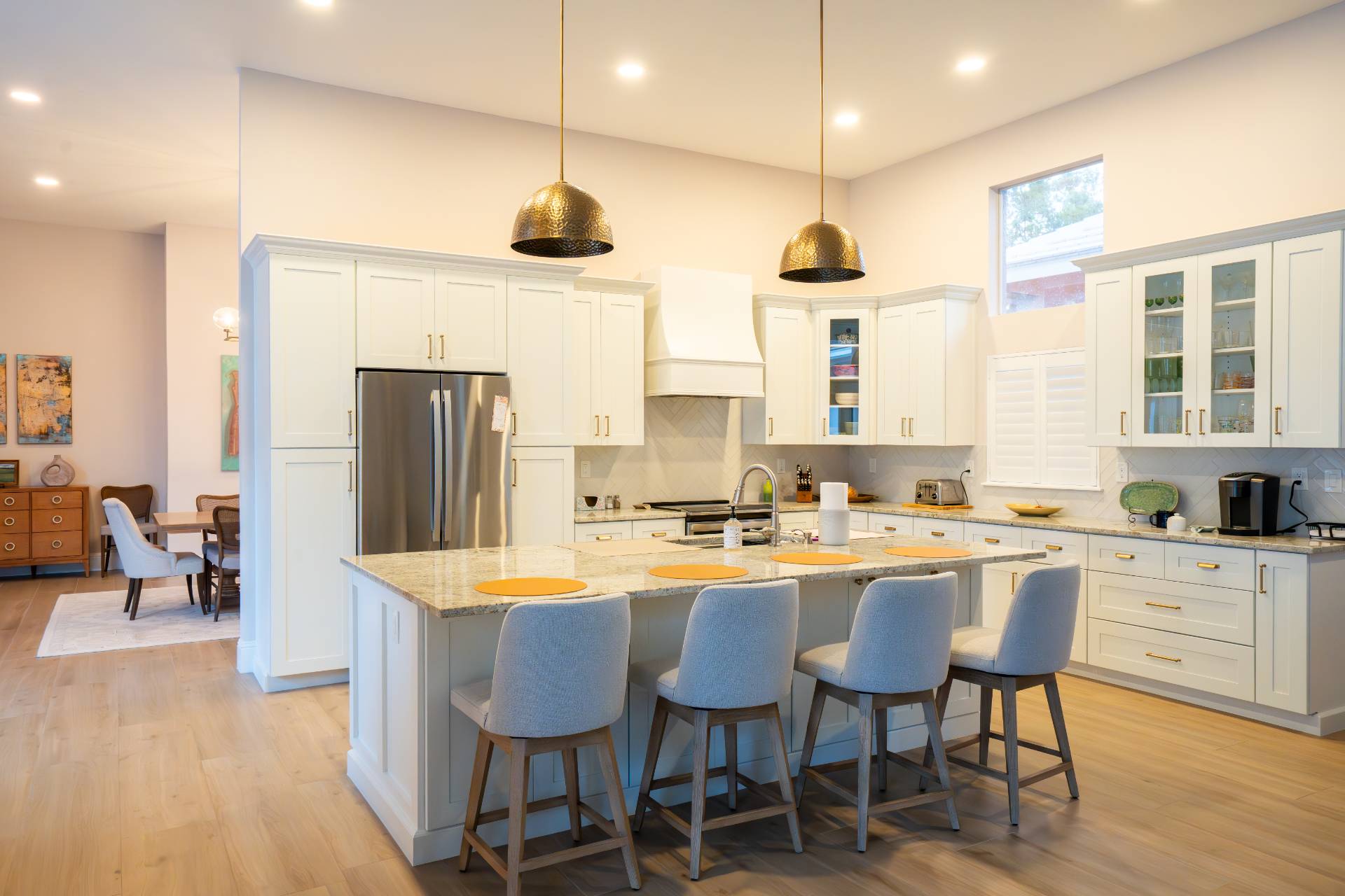 Additionally, the private Casita offers the ideal guest retreat—close enough to share the Florida sunshine but with plenty of privacy. This remodel turned a dated house into the perfect winter oasis, fulfilling our clients’ dream of relaxed, stylish Florida living.